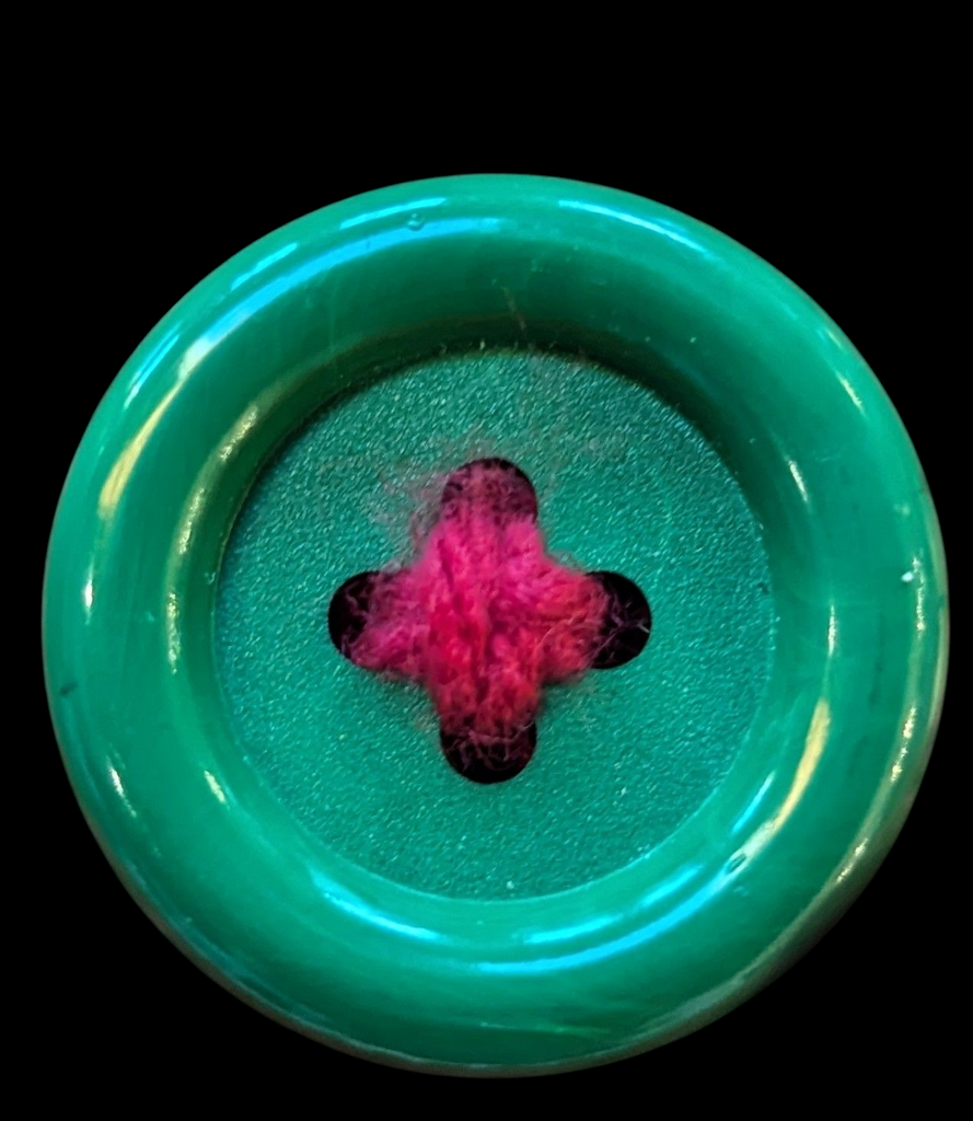 The hand-crocheted tops are a vibrant red with green buttons for easy hanging and a classic Christmas color combo that pops in any space.