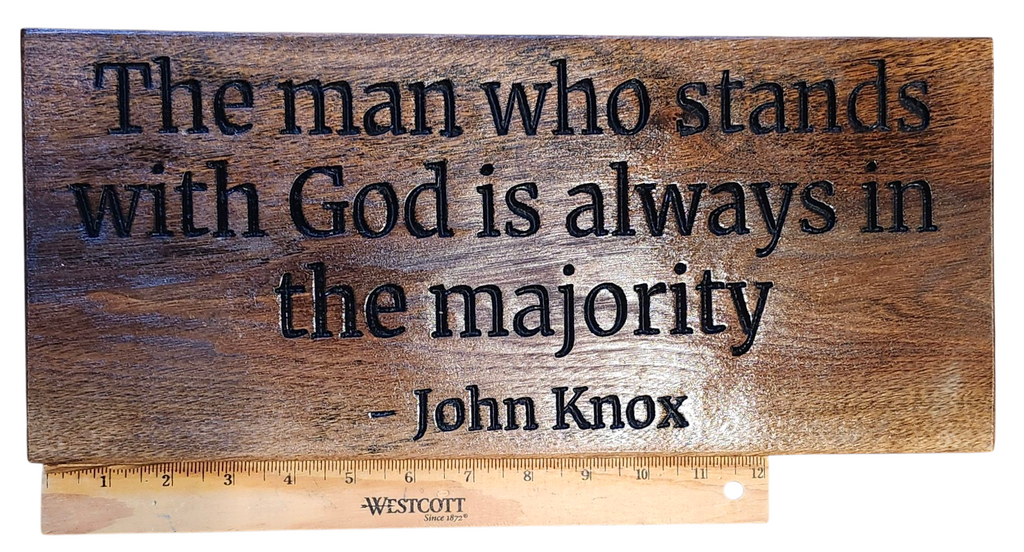 Honor courage, conviction, and faith with this handcrafted wooden sign featuring the timeless quote by John Knox:
